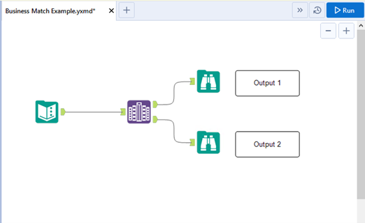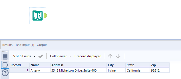 In order to utilize the Business Match tool in Alteryx, you will first need to bring in a dataset that contains a list of business names and addresses. Please note that the address should include City, State, and ZIP. For our purposes, we will feed in a single record; however, you could bring in a list of hundreds or even thousands of businesses.