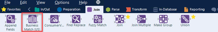 The next thing you’ll want to do is look in the join tab and find the Business Match tool.
