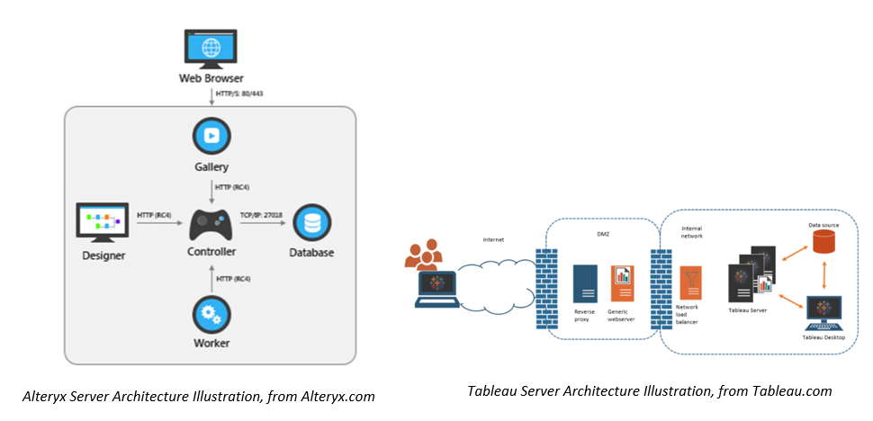 Tableau and Alteryx have many add-on features and functionality, but the core architecture of both products have several similarities.