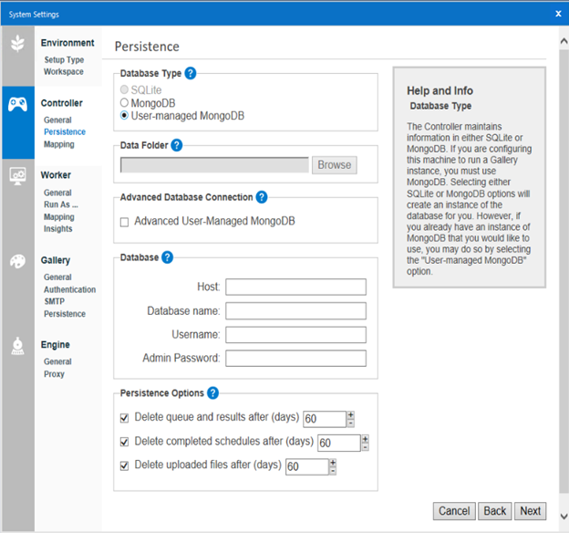 As applications like Alteryx become more and more critical to the operation of a company, new tactics are required to meet user demands. Alteryx understands that most organizations prefer an application that is easy to install, support, and maintain so the default installation includes an embedded version of MongoDB. For clients who need more control and have more IT expertise available, Alteryx has provided the ability to fully manage the MongoDB database using the user-managed installation option.