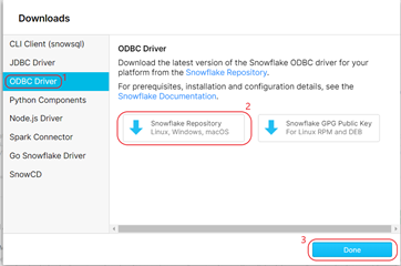 Before jumping into Alteryx, the ODBC connection needs to be configured. To start login to your Snowflake account, go to “Help” then “Download…”. From the Downloads pop-up select ODBC Driver and select the Snowflake repository. In the new tab that opens, select the driver type and version to download.