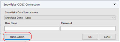 In Alteryx add an Input Data tool to the canvas. When selecting the data connection go to data sources then select the Snowflake ODBC connection, in the pop-up select ODC Admin.