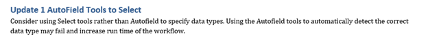 One of the key features in WAM’s workflow Audit Reports is automated suggestions to improve workflows. These recommendations are included at the beginning of each Audit Report and aim to increase the performance and flexibility of workflows. The suggestions to improve performance include things like reducing field sizes and disabling Browse tools to reduce runtimes by decreasing the amount of data being processed.