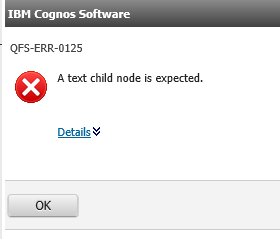 Here is where the issue arises. In Cognos Analytics (11), a prompt page will allow a user to pass over the prompt object if it is not set to required, even if the associated filter is required. This will result in a text child error for the report. The error can be especially difficult to address, as there is little information provided by the error message, and the report’s individual queries will all work, producing no errors.