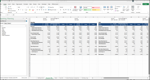 Too often FP&A teams are spending a significant amount of time each month reworking reports for things like formatting, the addition of new locations and accounts, and ad hoc requests. Workday Adaptive Planning offers web-based dashboarding and reports within the tool itself and an Excel add-in called OfficeConnect.